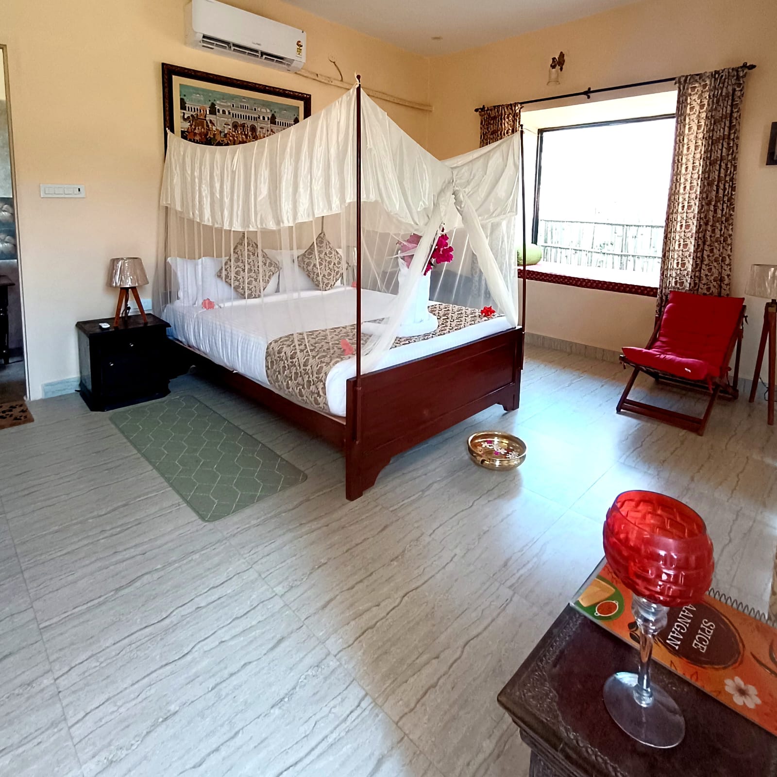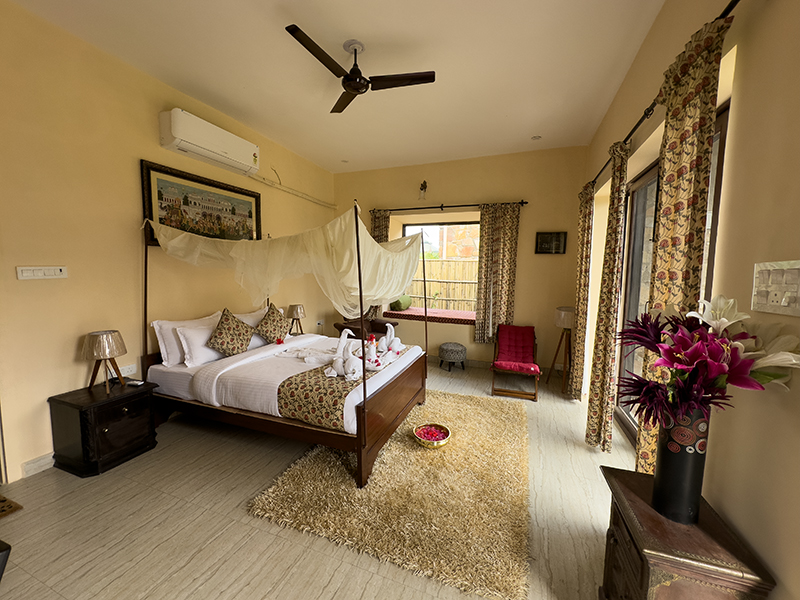 All rooms come with bath essentials (towels, toiletries), air-conditioning, hot water, tea/coffee making arrangements, free Wi-Fi, snack minibar, in-room dining, and 24×7 assistance. We don’t offer TVs or fridges in rooms to reduce our carbon footprint, but guests may request to store items in the kitchen fridge.