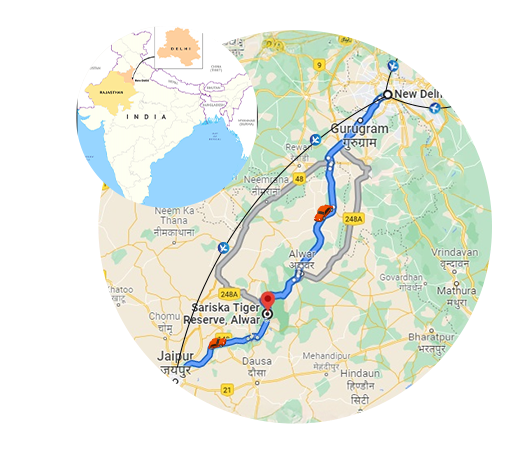 Chokhiwadi Forest Retreat is tucked away on the edge of Sariska Tiger Reserve, where the Aravalli Hills nurture a thriving forest and quiet trails. Just a few hours from the National Capital Region and the city of Jaipur, yet worlds away, our retreat sits amid native trees, wildflowers, butterflies and the songs of birds you may not have heard in years. With no honking of horns or hurried footsteps—only the rustle of leaves and the rhythm of nature—this is a place to slow down, sink in, and reconnect with the land. Getting to Chokhiwadi: